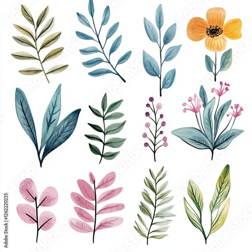 Watercolor Botanical Wildflower Leaf Doodle Set Nature Inspired Designs for Branding