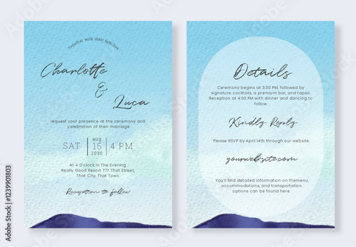 Watercolor Bright Blue Sky Flower Field Wedding Card Set Elegant Nature Scene For Rustic Wedding