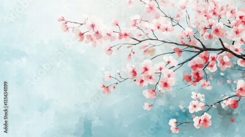 Watercolor Cherry blossom blooming flower,Sakura tree or forest side view,Cherry tree spring flower background,elements for environment and garden,botanical in spring season.