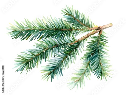 Watercolor Christmas Tree Branch Evergreen Sprig Winter Holiday Design