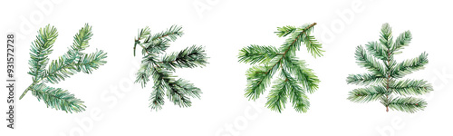 Watercolor Christmas tree branches png. Spruce branches with green needles isolated on transparent background. Winter festive evergreen decor, elements made of spruce or cedar