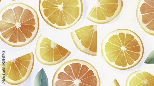 Watercolor Citrus Fruit Slices Pattern - Summer Background
