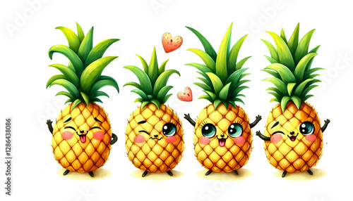 Watercolor Clipart set of a Funny Pineapple. Watercolor clipart illustration isolated on a white background