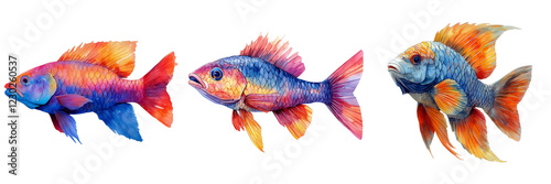 Watercolor colorful fish dynamic aquatic life art on a transparent background