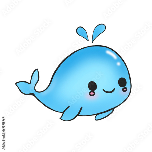 Watercolor Cute Blue Whale