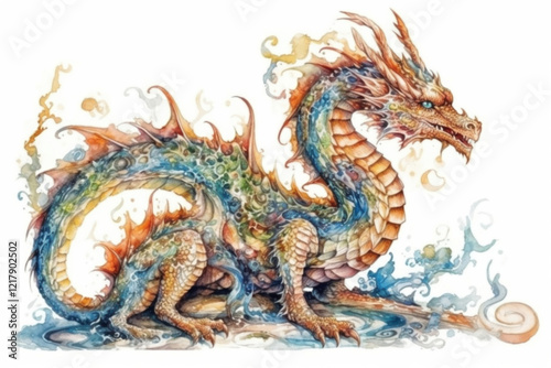 watercolor drawing of a dragon on a white background., watercolor style, Generative AI