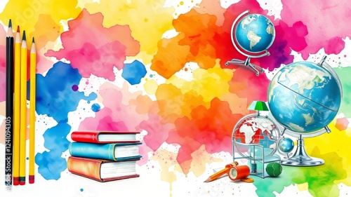 Watercolor Education Illustrative Pattern