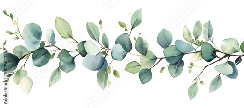 Watercolor eucalyptus garland isolated on a white background, detailed, with natural colors,