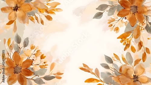 Watercolor floral artwork featuring autumnal hues and natural botanical elements