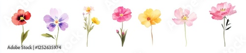 Watercolor floral bouquet; isolated, white background; spring; greeting card design