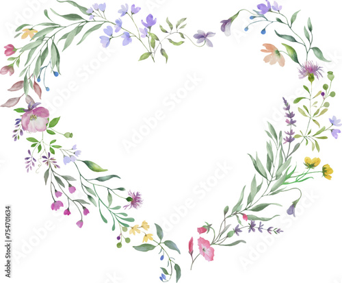 Watercolor floral heart. Hand drawn illustration isolated on transparent background. Vector EPS.