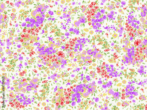 Watercolor Floral Seamless Pattern with Delicate Blossoms