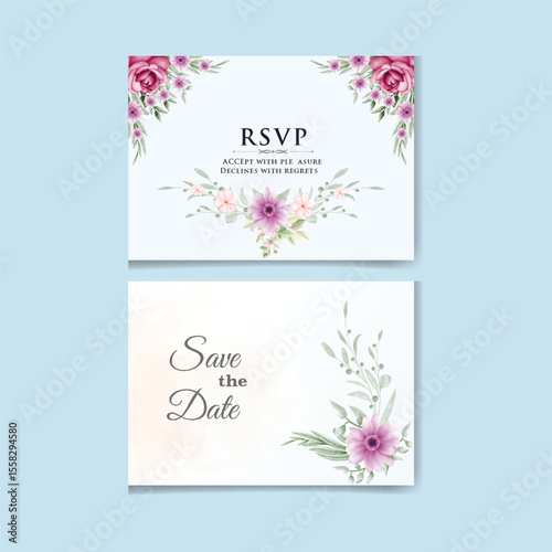 Watercolor Floral Wedding Invitation and RSVP Template Set