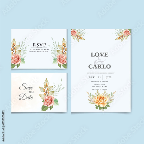 Watercolor Floral Wedding Invitation and RSVP Template Set