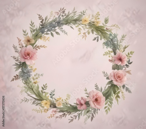 Watercolor Floral Wreath with Pastel Hues and Delicate Vines , vine, decor