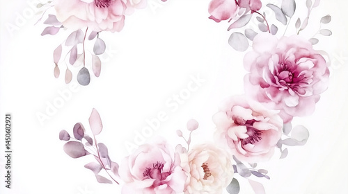 Watercolor Floral Wreath with Peonies and Eucalyptus on White