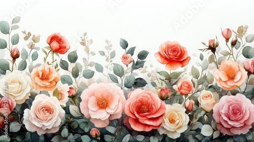 Watercolor Flower Border with Soft Pastels. Generative AI