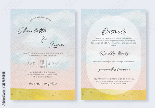 Watercolor Flower Field Wedding Card Set Elegant Nature Scene For Rustic Wedding