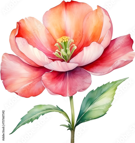 Watercolor flower with leaves painting.