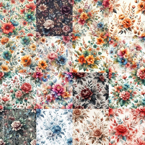 Watercolor flowers paint style backgrounds. AI generated illustration