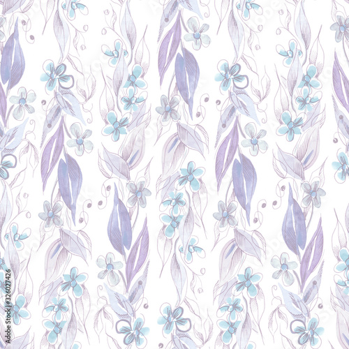 Watercolor Flowers Seamless Pattern. Hand Painted Background.
