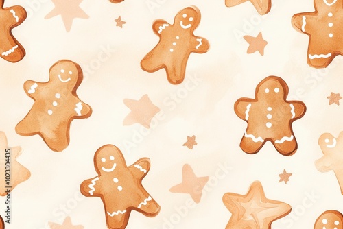 Watercolor Gingerbread Man Pattern - Festive Christmas Cookies Design