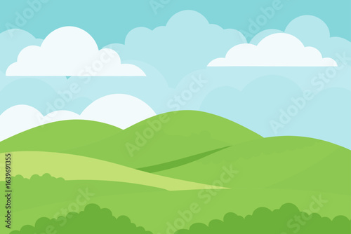 Watercolor Grassy Hills Under Soft Cloudy Sky