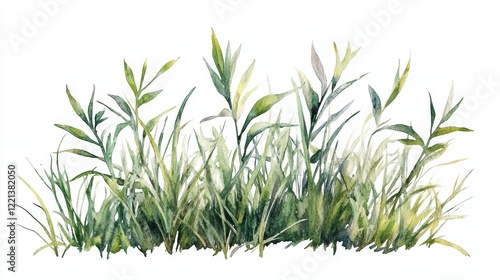 Watercolor Green Grass Side View for Landscape and Architecture Drawing
