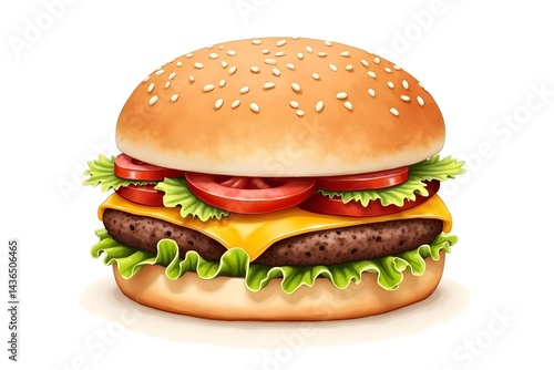 Watercolor Hamburger: Juicy Fast-Food Sandwich