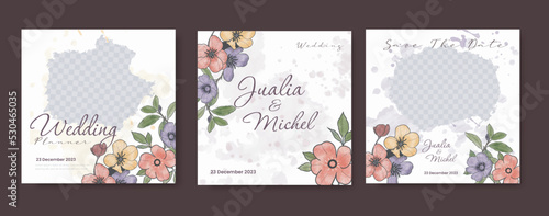 Watercolor hand drawn wedding social media post