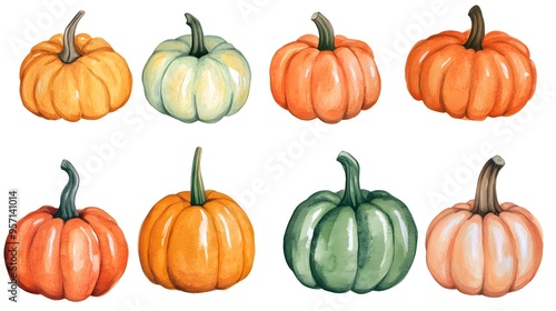 Watercolor hand-drawn pumpkin clipart, Halloween pumpkin collection, white background