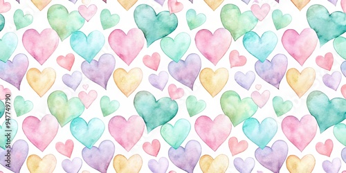 Watercolor hearts pattern with soft pastel colors for Valentine's Day or love-themed designs