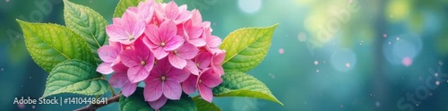Watercolor hydrangea bloom on branch , blue flower, hydrangea