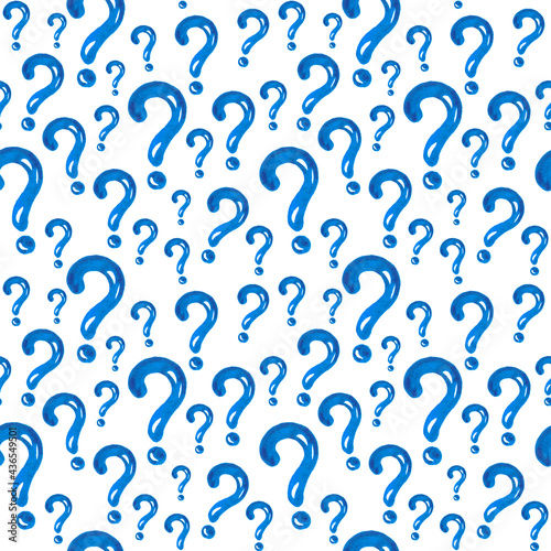Watercolor illustrated pattern of blue question mark set painted