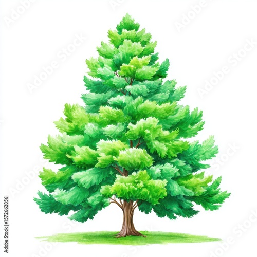 Watercolor Illustration of a Lush Green Tree on a White Background, Nature Artwork