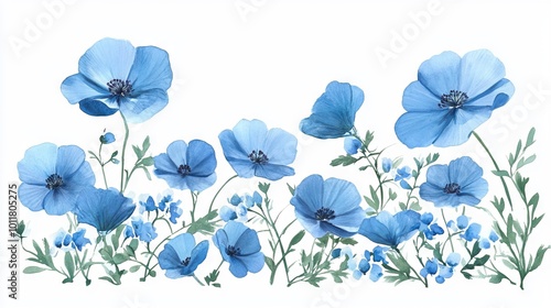 Watercolor Illustration of Blue Flowers with Copy Space. AI generated illustration