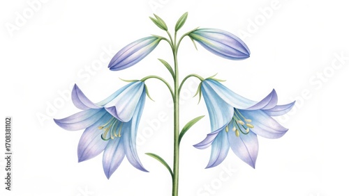 Watercolor illustration of bluebell flower isolated on white background, delicate floral design element