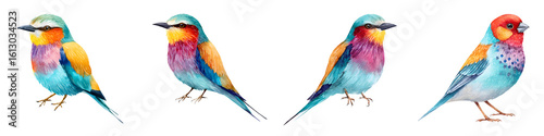 Watercolor Illustration of Colorful Tropical Birds on White Background