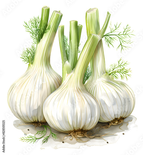 watercolor illustration of Fresh fennel isolated on transparent background.