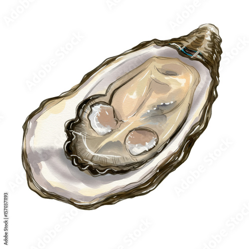 Watercolor Illustration of Oyster Shellfish Seafood Gourmet Dish