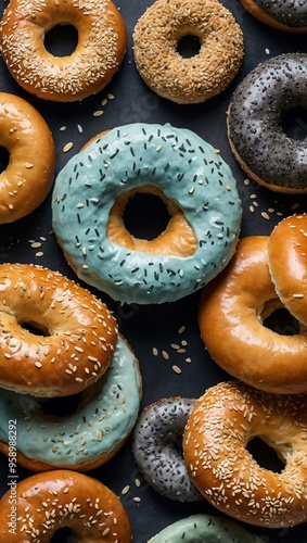 Watercolor illustration of plain and sesame seed bagels, perfect for breakfast branding.