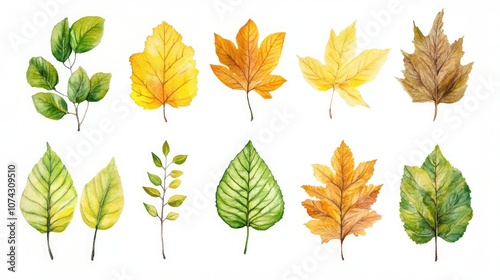 Watercolor illustration showcasing a stunning assortment of summer leaves