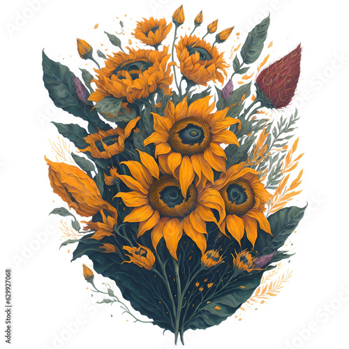 Watercolor Illustration Sunflowers PNG Design, Can be used for the logo, t-shirt design, posters, banners, greetings, print design, generative ai