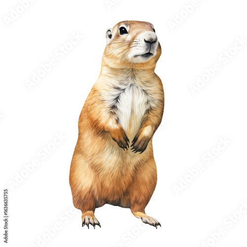 Watercolor Isolated Beige Prairie Dog Standing on its Back Legs Looking in the Distance