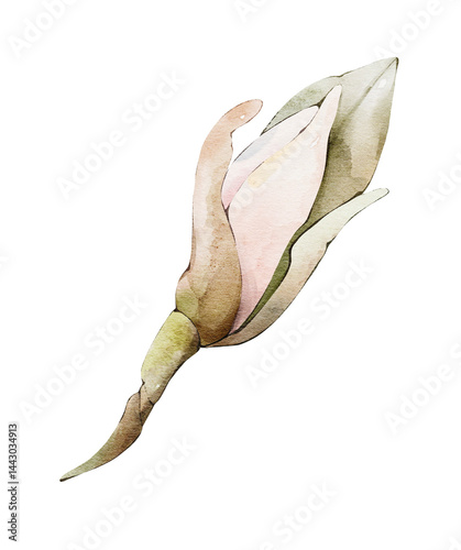 Watercolor magnolia floral bud