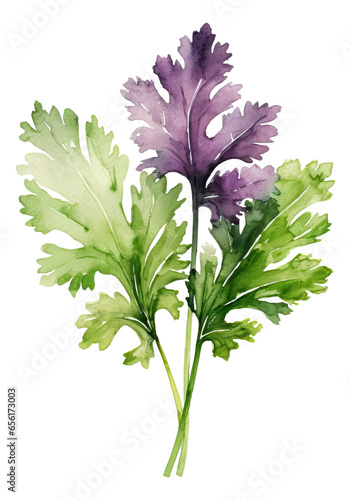 Watercolor Mizuna or Japanese water vegetable isolated.