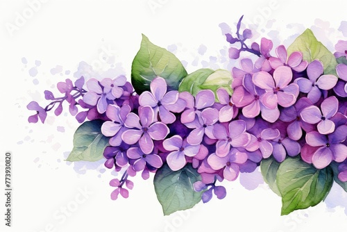 watercolor of heliotrope clipart with clusters of purple flowers. flowers frame, botanical border, Floral blooming blossom painting on white background.