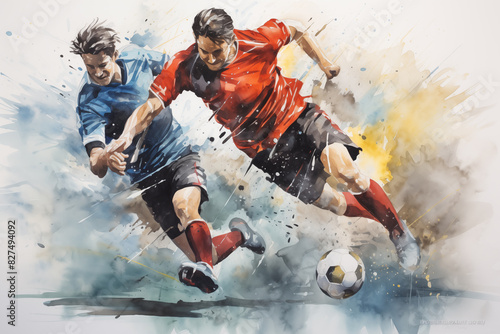 Watercolor of soccer sport match
