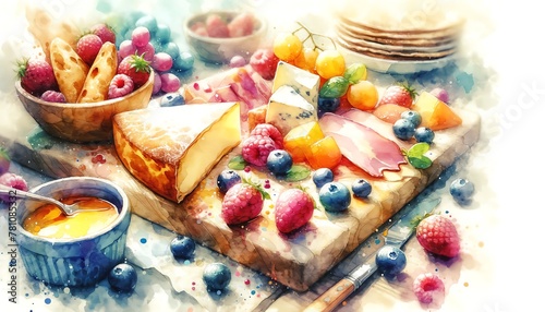 Watercolor Painting of a Charcuterie Board