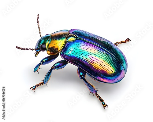 Watercolor painting of a jewel beetle with iridescent colors, blending deep blues and greens on a soft gradient background